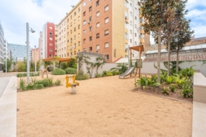 Piso en venta al lado del Centro Comercial Glories, en El Parc i la Llacuna del Poblenou, Barcelona. Dentro del distrito de Poblenou y colindando con el Barrio del EixampleVivienda en planta baja con piscina comunitaria con depuración salina y solarium.Superficie de 111,26m2 útiles y 159,98m2 construidos distribuidos en salón comedor, cocina equipada, 4 dormitorios y 2 baños.Excelentes calidades del Grupo PORCELANOSA (solados, alicatados y mobiliario en baños), sistema de calefacción mediante suelo radiante y sistema de refrigeración mediante conductos en salón y dormitorios.Además, en la planta baja cuenta con zonas ajardinadas, área de juegos infantiles y una amplia sala lobby para uso comunitario, con acceso desde la zona exterior.2 PLAZAS DE PARKING Y 1 TRASTERO OBLIGATORIOS, NO INCLUIDOS EN EL PRECIO.En autobús conecta con varias líneas que conectan con diferentes puntos de la ciudad: 7, V25, V23, 192 y H12.En metro, encontramos la parada de metro Glòries con la línea L1 que conecta Bellvitge con Santa Coloma, pasando por el centro de la ciudad de Barcelona.En TRAM encontramos varias líneas que conectan con la playa de Santa Adrià de Besós y las líneas T5 y T6 que conectan el centro con Badalona.